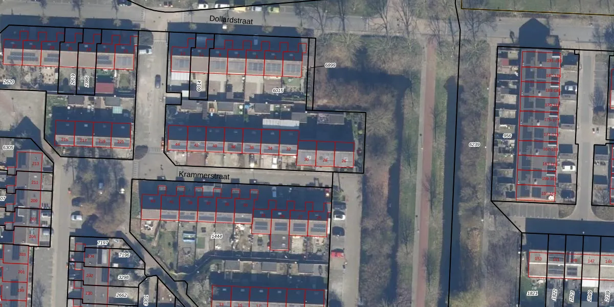 Het perceel waarop Krammerstraat 30 staat heeft een oppervlakte van 2209 m². Dit is een zeer groot perceel. De perceeloppervlakte wordt geregistreerd door het Kadaster. Gedetailleerde informatie over de maten van dit perceel kunt u vinden in het rapport Kadastrale kaart met maatvoering van Krammerstraat 30.