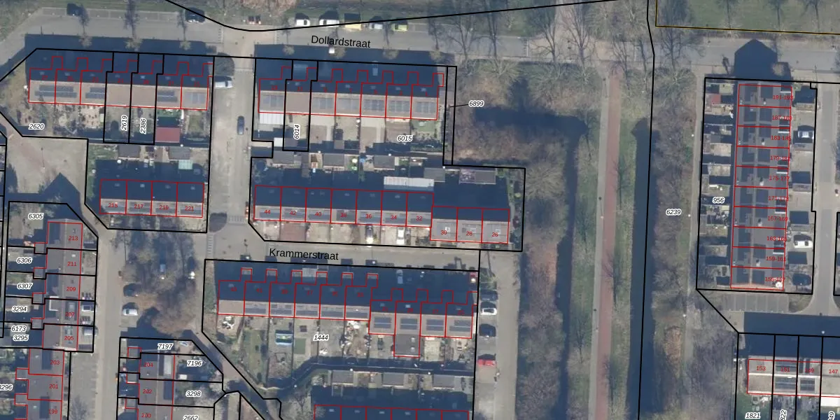 Het perceel waarop Krammerstraat 32 staat heeft een oppervlakte van 2209 m². Dit is een zeer groot perceel. De perceeloppervlakte wordt geregistreerd door het Kadaster. Gedetailleerde informatie over de maten van dit perceel kunt u vinden in het rapport Kadastrale kaart met maatvoering van Krammerstraat 32.