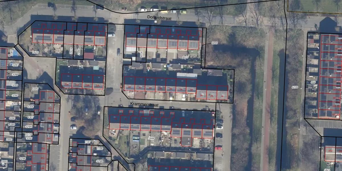 Het perceel waarop Krammerstraat 36 staat heeft een oppervlakte van 2209 m². Dit is een zeer groot perceel. De perceeloppervlakte wordt geregistreerd door het Kadaster. Gedetailleerde informatie over de maten van dit perceel kunt u vinden in het rapport Kadastrale kaart met maatvoering van Krammerstraat 36.