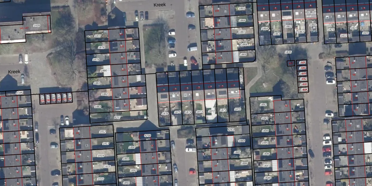 Het perceel waarop Kreek 117 staat heeft een oppervlakte van 183 m². Dit is een middelgroot perceel. De perceeloppervlakte wordt geregistreerd door het Kadaster. Gedetailleerde informatie over de maten van dit perceel kunt u vinden in het rapport Kadastrale kaart met maatvoering van Kreek 117.