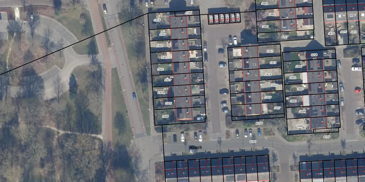Het perceel waarop Kreek 12 staat heeft een oppervlakte van 178 m². Dit is een middelgroot perceel. De perceeloppervlakte wordt geregistreerd door het Kadaster. Gedetailleerde informatie over de maten van dit perceel kunt u vinden in het rapport Kadastrale kaart met maatvoering van Kreek 12.
