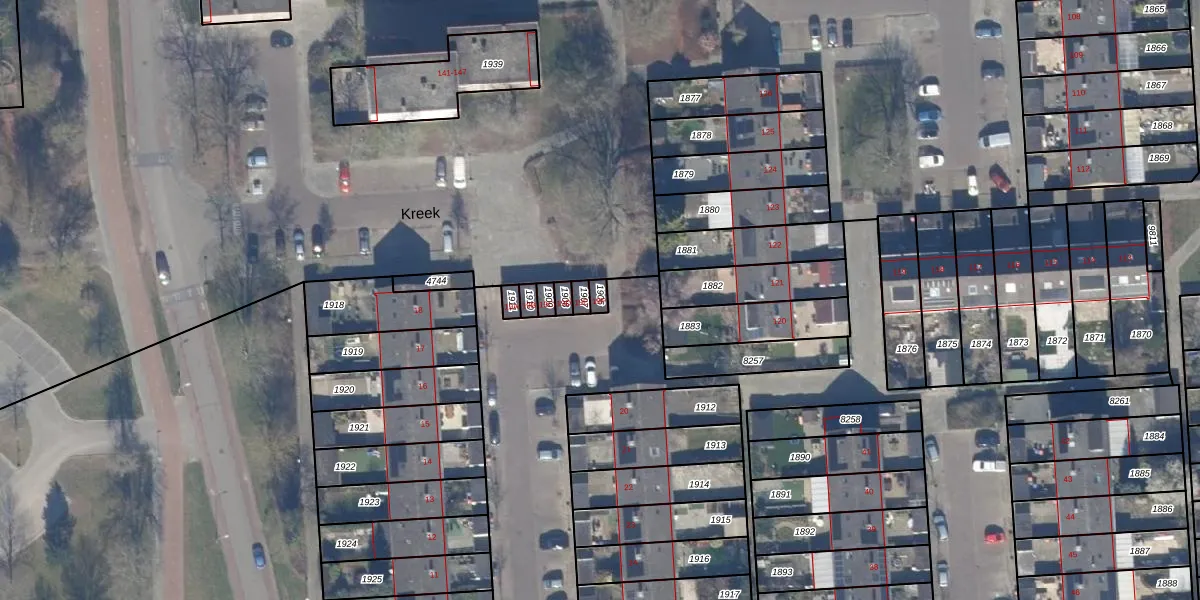 Het perceel waarop Kreek 19-F staat heeft een oppervlakte van 17 m². Dit is een klein perceel. De perceeloppervlakte wordt geregistreerd door het Kadaster. Gedetailleerde informatie over de maten van dit perceel kunt u vinden in het rapport Kadastrale kaart met maatvoering van Kreek 19-F.