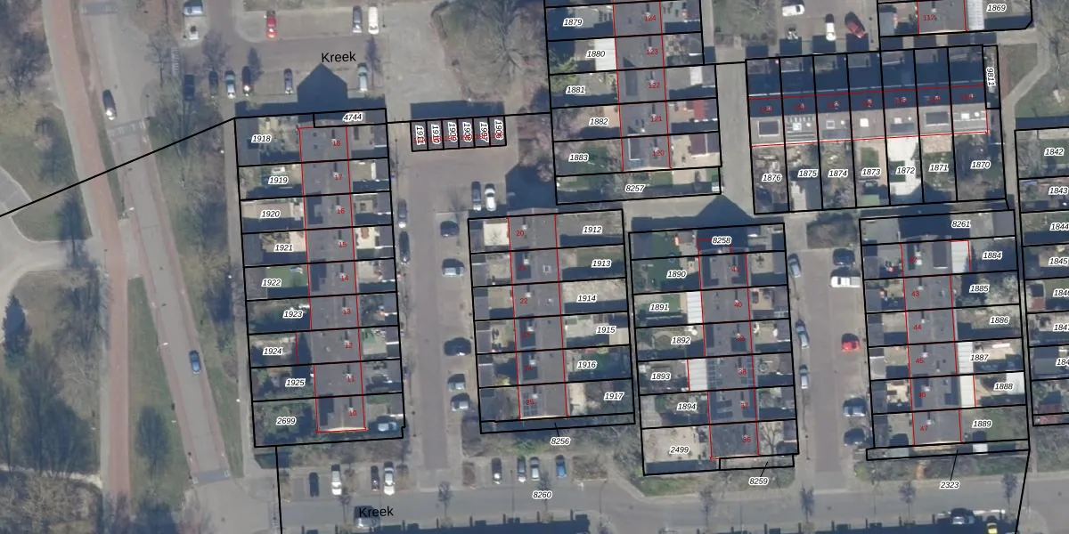 Het perceel waarop Kreek 21 staat heeft een oppervlakte van 182 m². Dit is een middelgroot perceel. De perceeloppervlakte wordt geregistreerd door het Kadaster. Gedetailleerde informatie over de maten van dit perceel kunt u vinden in het rapport Kadastrale kaart met maatvoering van Kreek 21.