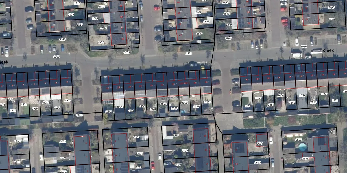 Gebruik de zoekbalk of klik op een perceel voor informatie over de adressen binnen dit perceel.