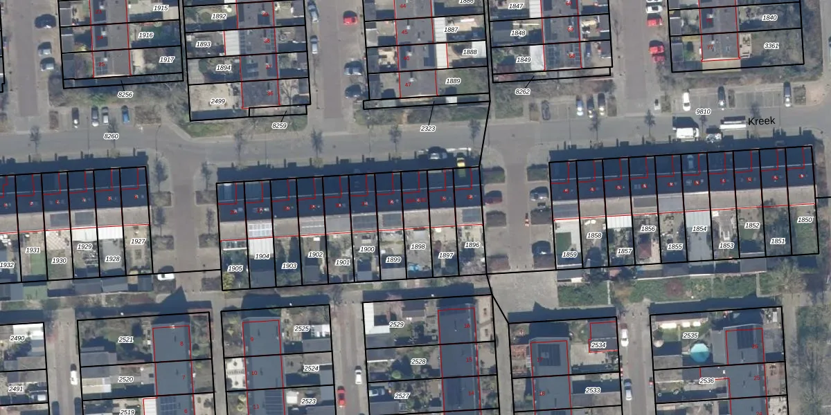 Het perceel waarop Kreek 33-A staat heeft een oppervlakte van 163 m². Dit is een middelgroot perceel. De perceeloppervlakte wordt geregistreerd door het Kadaster. Gedetailleerde informatie over de maten van dit perceel kunt u vinden in het rapport Kadastrale kaart met maatvoering van Kreek 33-A.