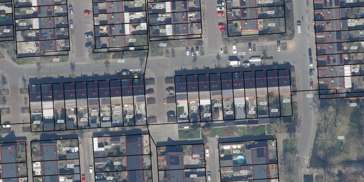 Het perceel waarop Kreek 48 staat heeft een oppervlakte van 168 m². Dit is een middelgroot perceel. De perceeloppervlakte wordt geregistreerd door het Kadaster. Gedetailleerde informatie over de maten van dit perceel kunt u vinden in het rapport Kadastrale kaart met maatvoering van Kreek 48.