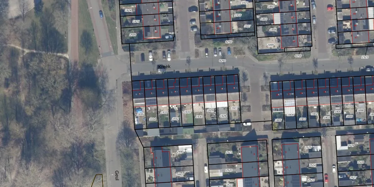 Het perceel waarop Kreek 5 staat heeft een oppervlakte van 163 m². Dit is een middelgroot perceel. De perceeloppervlakte wordt geregistreerd door het Kadaster. Gedetailleerde informatie over de maten van dit perceel kunt u vinden in het rapport Kadastrale kaart met maatvoering van Kreek 5.