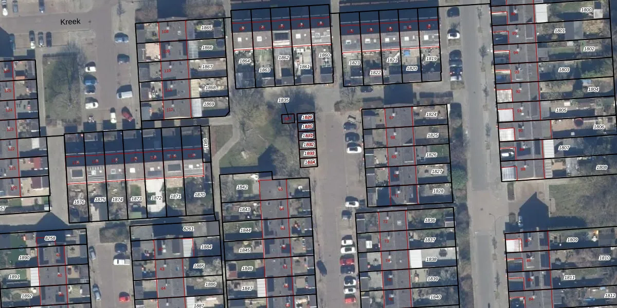 Gebruik de zoekbalk of klik op een perceel voor informatie over de adressen binnen dit perceel.