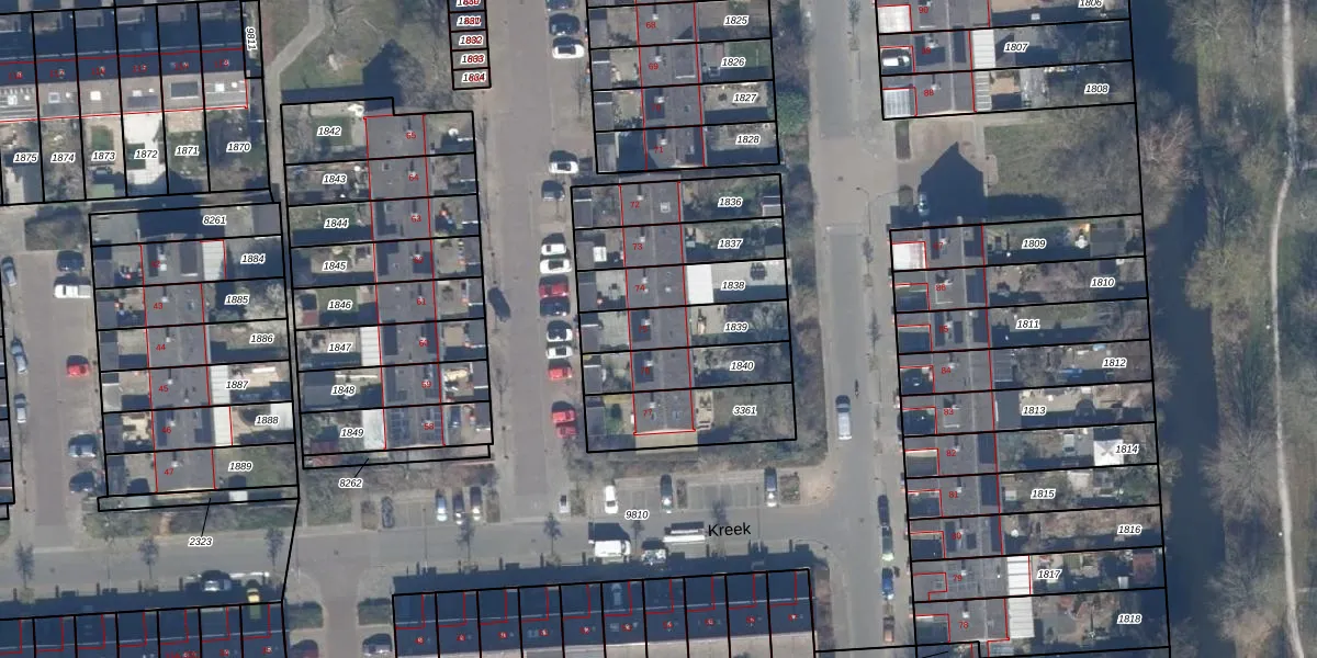 Het perceel waarop Kreek 75 staat heeft een oppervlakte van 200 m². Dit is een middelgroot perceel. De perceeloppervlakte wordt geregistreerd door het Kadaster. Gedetailleerde informatie over de maten van dit perceel kunt u vinden in het rapport Kadastrale kaart met maatvoering van Kreek 75.