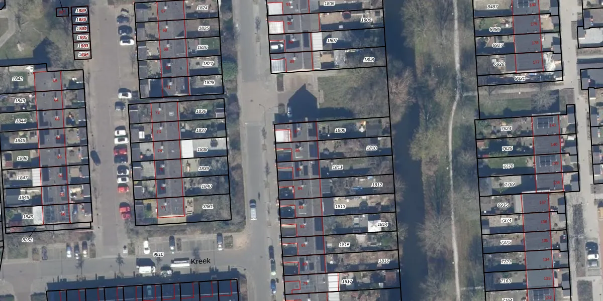 Gebruik de zoekbalk of klik op een perceel voor informatie over de adressen binnen dit perceel.