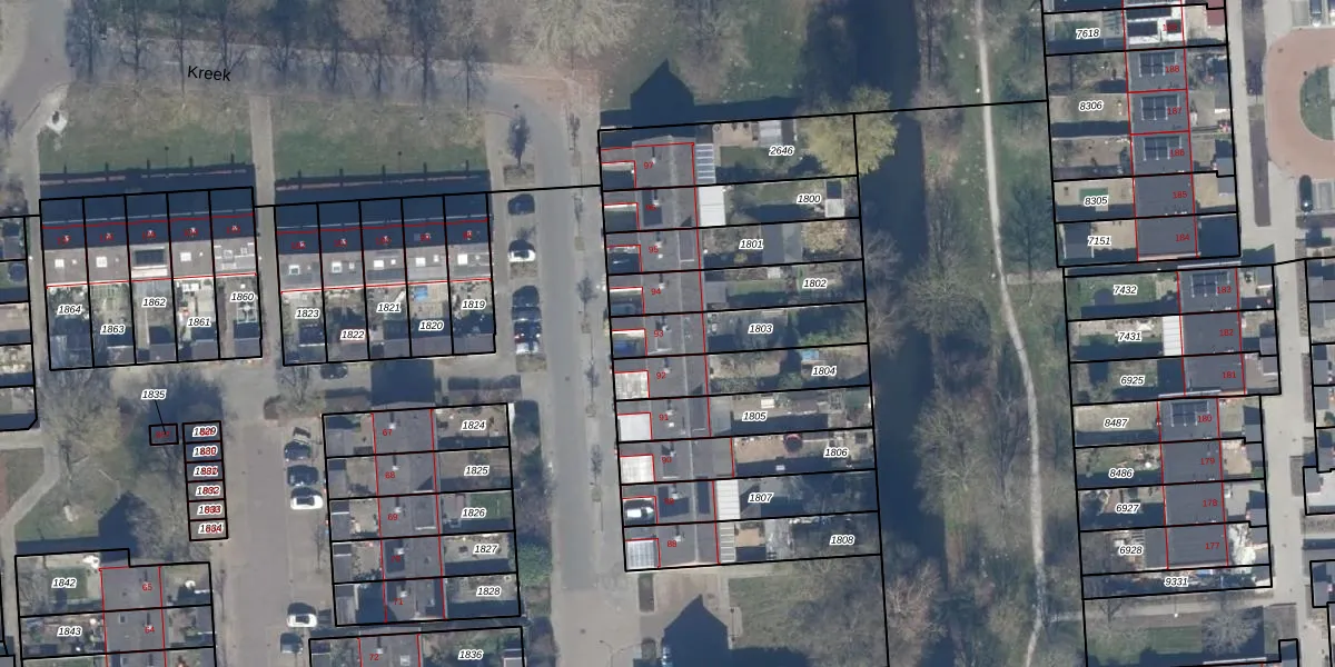Het perceel waarop Kreek 93 staat heeft een oppervlakte van 242 m². Dit is een middelgroot perceel. De perceeloppervlakte wordt geregistreerd door het Kadaster. Gedetailleerde informatie over de maten van dit perceel kunt u vinden in het rapport Kadastrale kaart met maatvoering van Kreek 93.
