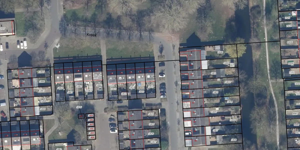 Gebruik de zoekbalk of klik op een perceel voor informatie over de adressen binnen dit perceel.