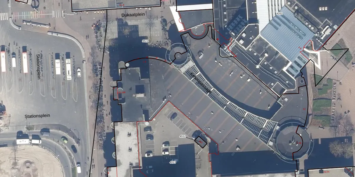 Het perceel waarop Kroonpassage 27 staat heeft een oppervlakte van 8234 m². Dit is een zeer groot perceel. De perceeloppervlakte wordt geregistreerd door het Kadaster. Gedetailleerde informatie over de maten van dit perceel kunt u vinden in het rapport Kadastrale kaart met maatvoering van Kroonpassage 27.