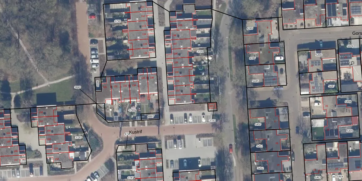 Het perceel waarop Kustrif 102 staat heeft een oppervlakte van 1247 m². Dit is een zeer groot perceel. De perceeloppervlakte wordt geregistreerd door het Kadaster. Gedetailleerde informatie over de maten van dit perceel kunt u vinden in het rapport Kadastrale kaart met maatvoering van Kustrif 102.