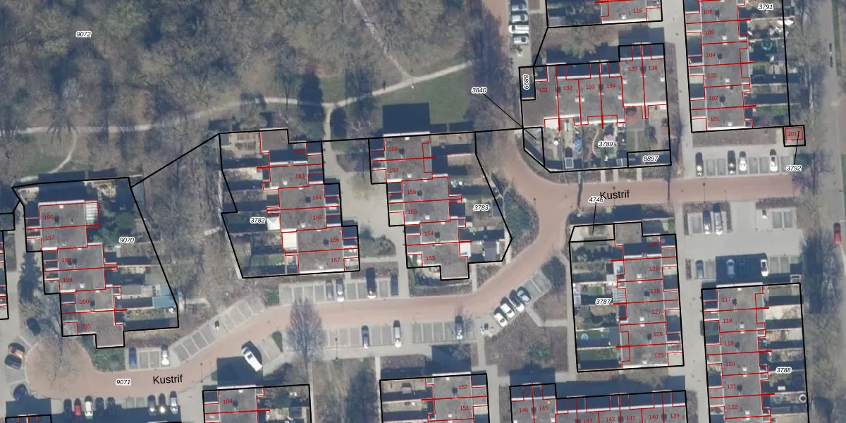 Het perceel waarop Kustrif 155 staat heeft een oppervlakte van 796 m². Dit is een groot perceel. De perceeloppervlakte wordt geregistreerd door het Kadaster. Gedetailleerde informatie over de maten van dit perceel kunt u vinden in het rapport Kadastrale kaart met maatvoering van Kustrif 155.