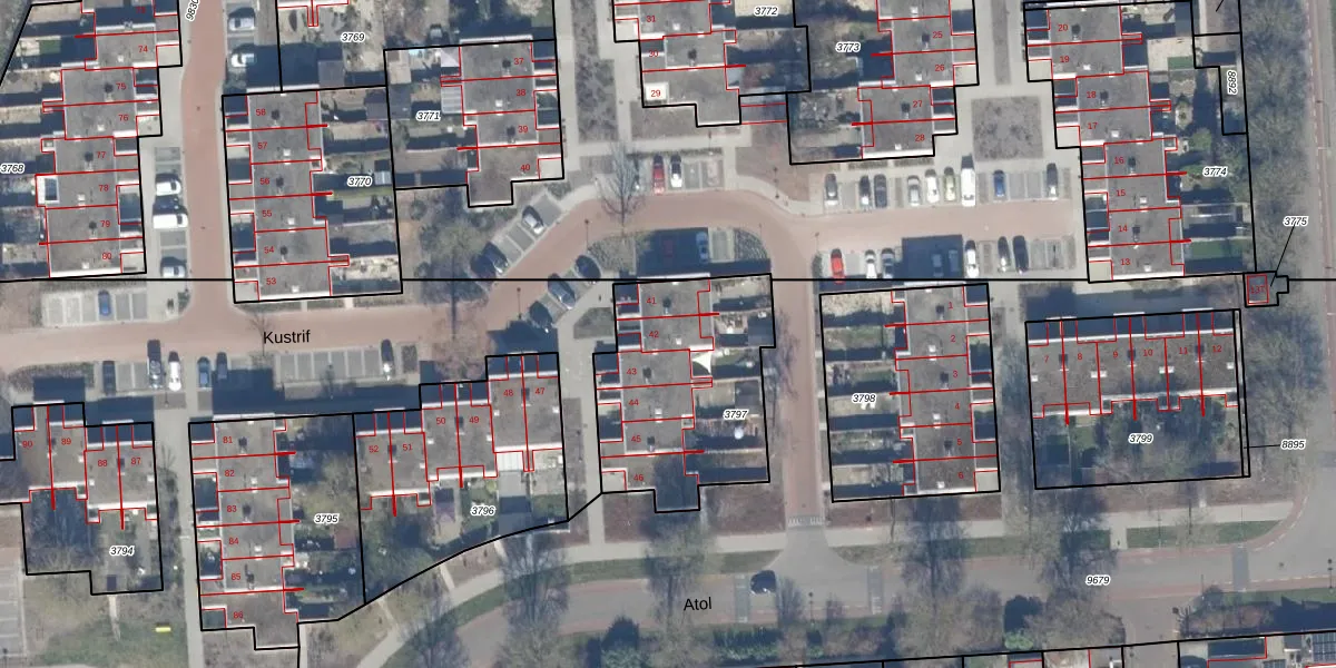Kustrif 42 is gelegen op kadastraal perceel LLS00K3797. Deze kadastrale aanduiding is uniek en wordt gebruikt door het Kadaster om eigendomsrechten en andere zakelijke rechten vast te leggen. Het perceel maakt onderdeel uit van de kadastrale gemeente Lelystad.