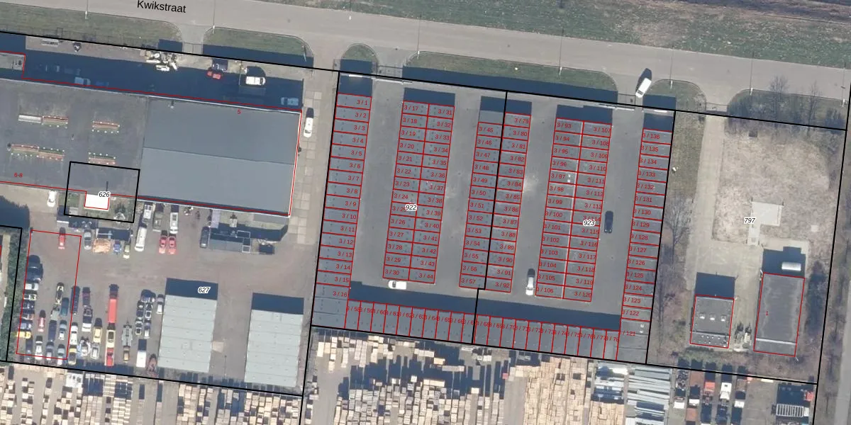 Kwikstraat 3-39 is gelegen op kadastraal perceel LLS00F922. Deze kadastrale aanduiding is uniek en wordt gebruikt door het Kadaster om eigendomsrechten en andere zakelijke rechten vast te leggen. Het perceel maakt onderdeel uit van de kadastrale gemeente Lelystad.