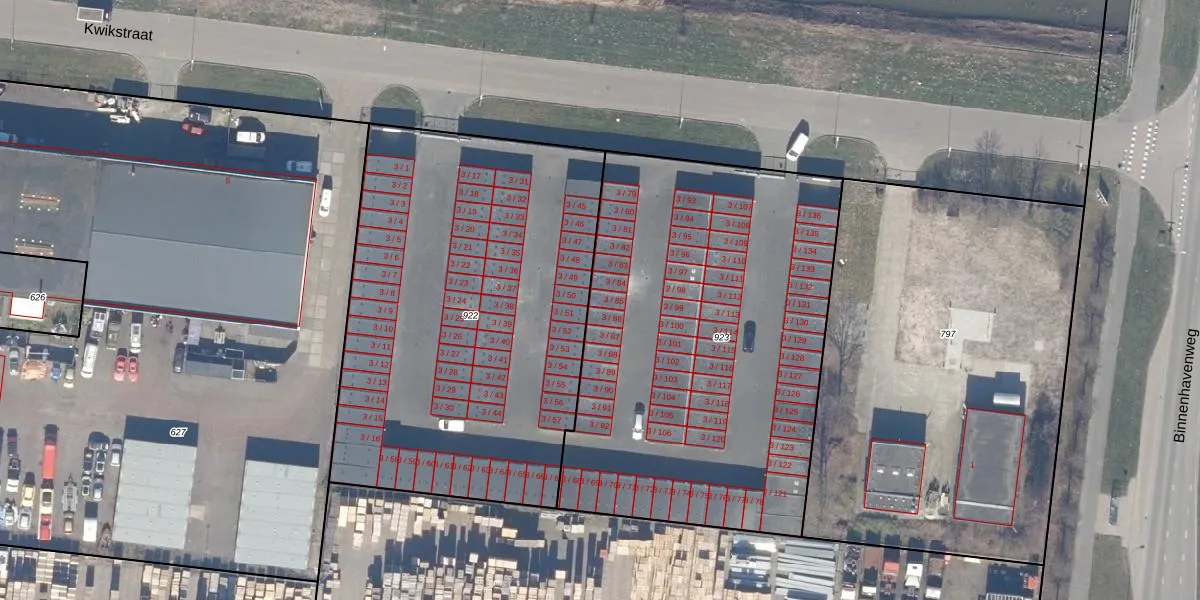 Kwikstraat 3-85 is gelegen op kadastraal perceel LLS00F923. Deze kadastrale aanduiding is uniek en wordt gebruikt door het Kadaster om eigendomsrechten en andere zakelijke rechten vast te leggen. Het perceel maakt onderdeel uit van de kadastrale gemeente Lelystad.