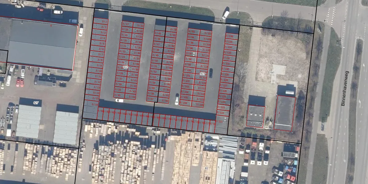 Het adres is gelegen op perceel 923 in de sectie F en de kadastrale gemeente Lelystad. De kadastrale aanduiding is aldus LLS00-F-923. Het perceel is kleiner dan gemiddeld in Lelystad. Het perceel is 2410 m² groot, terwijl het gemiddelde ligt op 2,1 ha. De grootste perceeloppervlakte in de kadastrale gemeente is 78,50 km². De kleinste oppervlakte bedraagt 0 m². Op het perceel liggen in totaal 69 adressen. In de Basisregistratie Kadaster (BRK) werden de grenzen van het perceel geregistreerd op 30-10-2008.