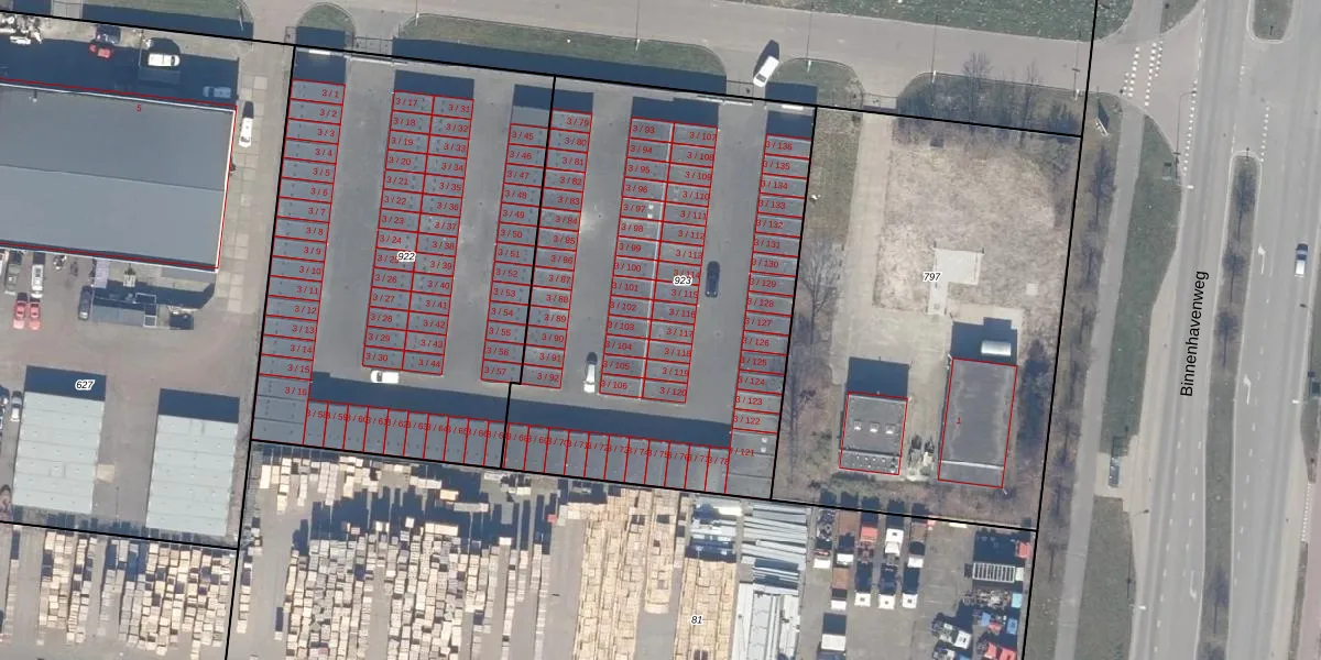 Het adres is gelegen op perceel 923 in de sectie F en de kadastrale gemeente Lelystad. De kadastrale aanduiding is aldus LLS00-F-923. Het perceel is kleiner dan gemiddeld in Lelystad. Het perceel is 2410 m² groot, terwijl het gemiddelde ligt op 2,1 ha. De grootste perceeloppervlakte in de kadastrale gemeente is 78,50 km². De kleinste oppervlakte bedraagt 0 m². Op het perceel liggen in totaal 69 adressen. In de Basisregistratie Kadaster (BRK) werden de grenzen van het perceel geregistreerd op 30-10-2008.