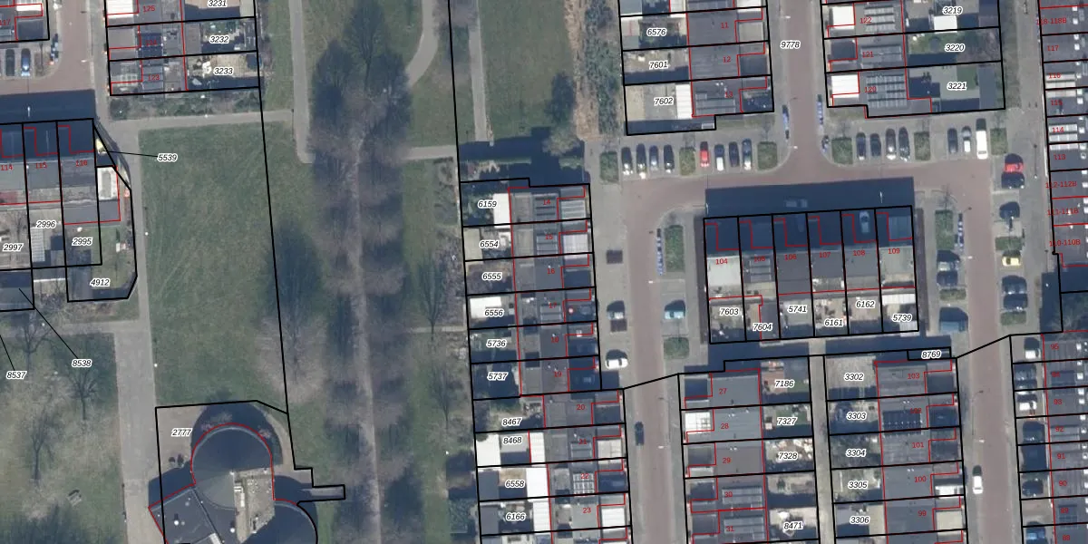 Gebruik de zoekbalk of klik op een perceel voor informatie over de adressen binnen dit perceel.