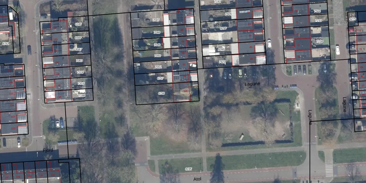 Lagune 53 is gelegen op kadastraal perceel LLS00K6758. Deze kadastrale aanduiding is uniek en wordt gebruikt door het Kadaster om eigendomsrechten en andere zakelijke rechten vast te leggen. Het perceel maakt onderdeel uit van de kadastrale gemeente Lelystad.