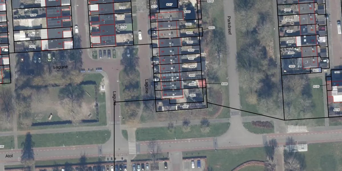 Gebruik de zoekbalk of klik op een perceel voor informatie over de adressen binnen dit perceel.