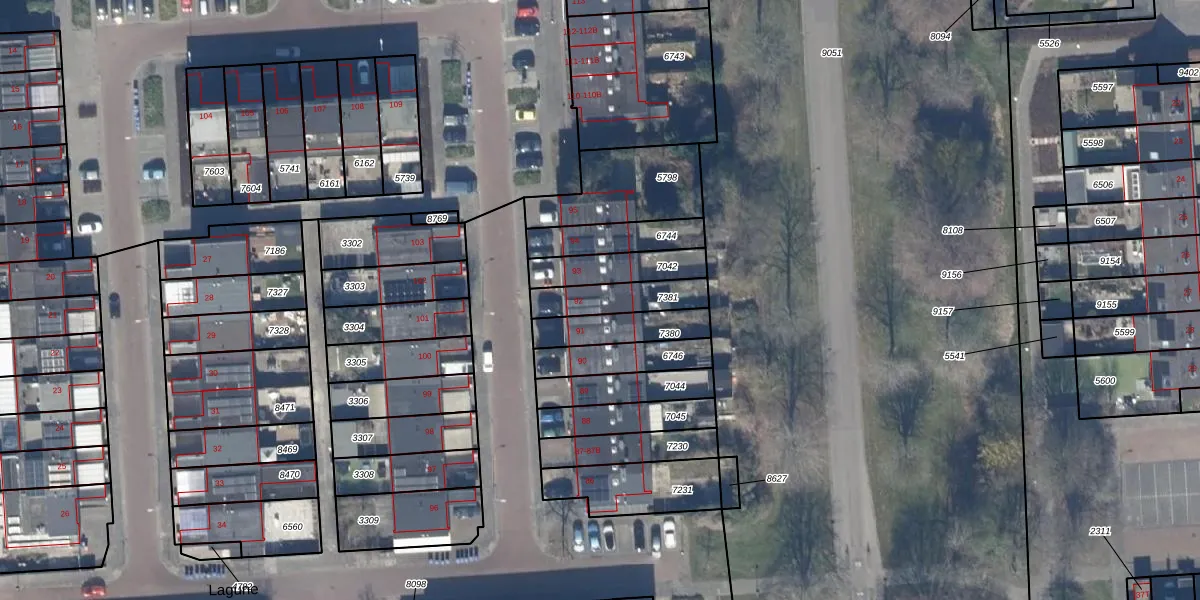 Gebruik de zoekbalk of klik op een perceel voor informatie over de adressen binnen dit perceel.