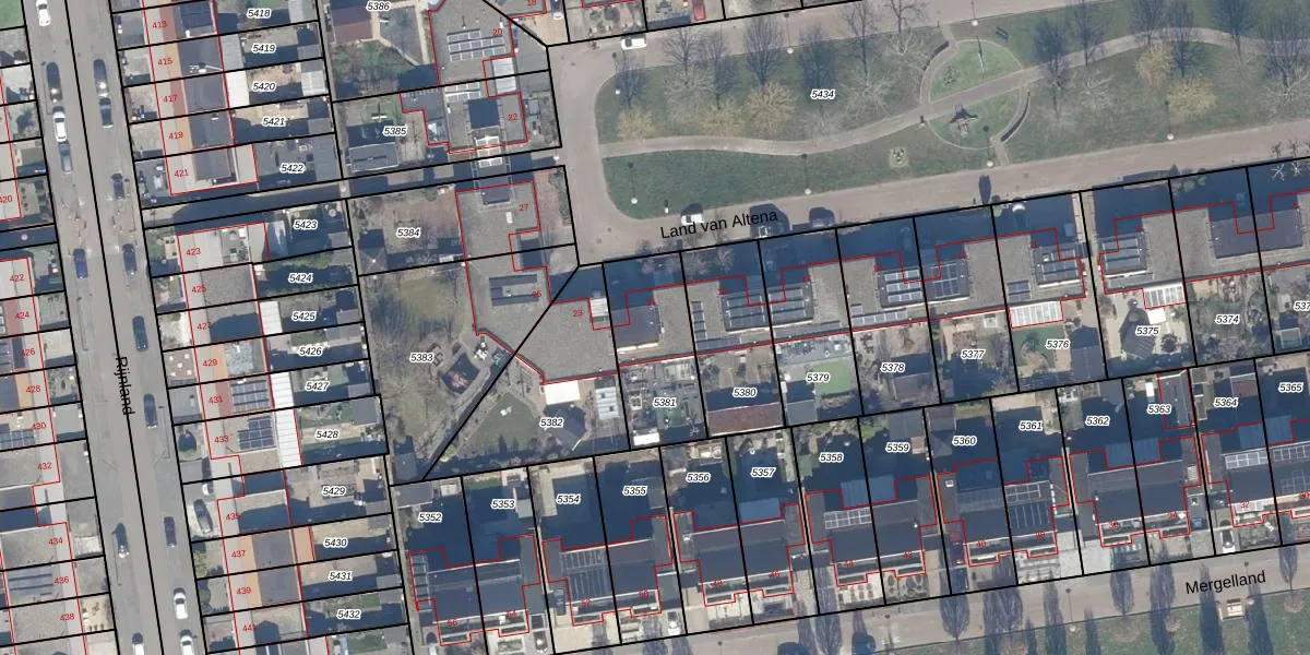 Gebruik de zoekbalk of klik op een perceel voor informatie over de adressen binnen dit perceel.