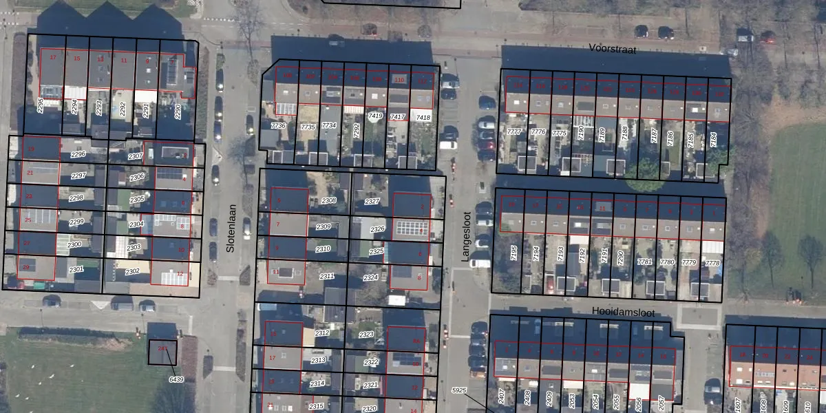 Gebruik de zoekbalk of klik op een perceel voor informatie over de adressen binnen dit perceel.