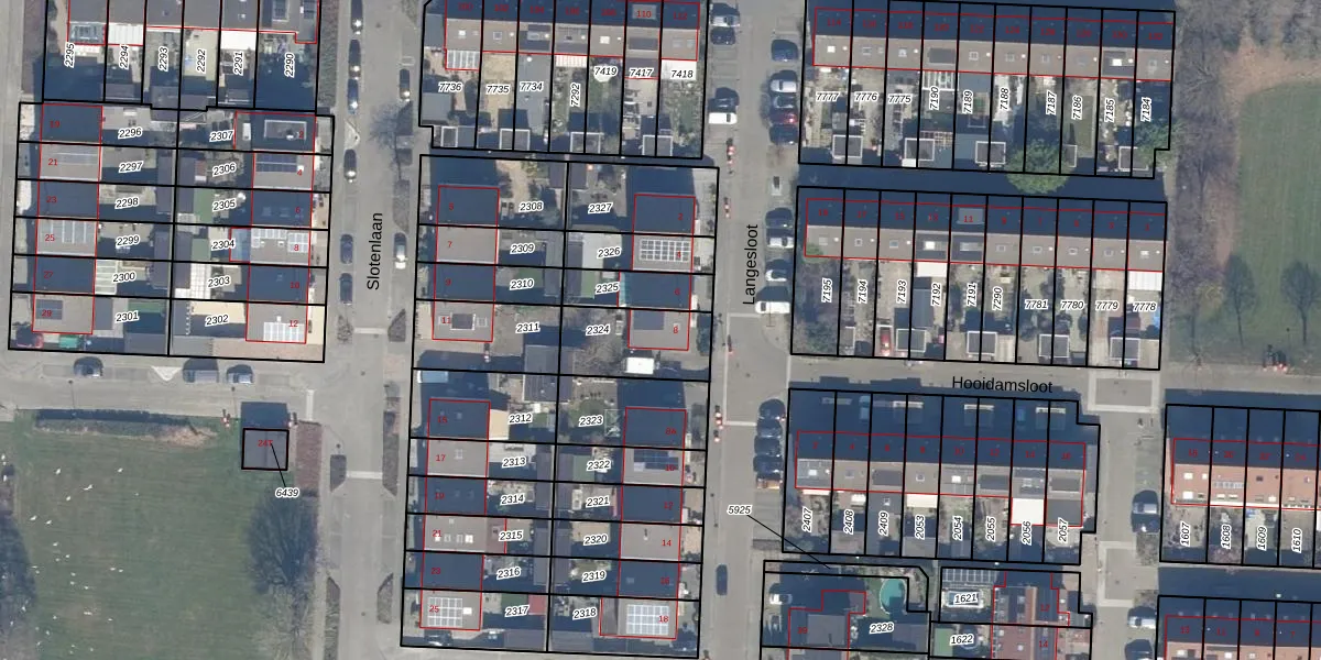 Gebruik de zoekbalk of klik op een perceel voor informatie over de adressen binnen dit perceel.