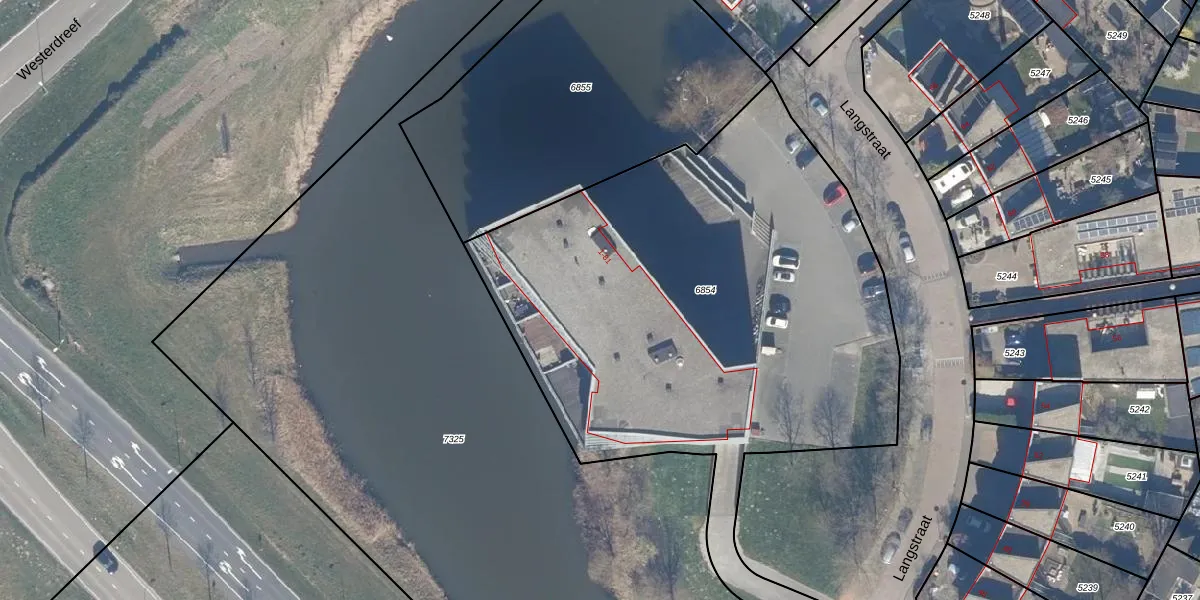 Het perceel waarop Langstraat 65 staat heeft een oppervlakte van 3190 m². Dit is een zeer groot perceel. De perceeloppervlakte wordt geregistreerd door het Kadaster. Gedetailleerde informatie over de maten van dit perceel kunt u vinden in het rapport Kadastrale kaart met maatvoering van Langstraat 65.