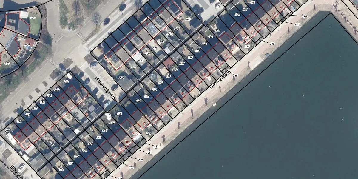 Lemmerkade 36 is gelegen op kadastraal perceel LLS00S189. Deze kadastrale aanduiding is uniek en wordt gebruikt door het Kadaster om eigendomsrechten en andere zakelijke rechten vast te leggen. Het perceel maakt onderdeel uit van de kadastrale gemeente Lelystad.