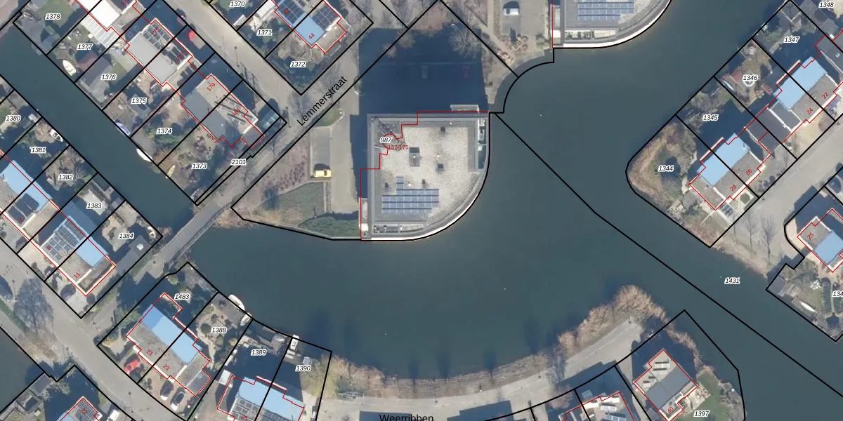 Het perceel waarop Lemmerstraat 165 staat heeft een oppervlakte van 2121 m². Dit is een zeer groot perceel. De perceeloppervlakte wordt geregistreerd door het Kadaster. Gedetailleerde informatie over de maten van dit perceel kunt u vinden in het rapport Kadastrale kaart met maatvoering van Lemmerstraat 165.