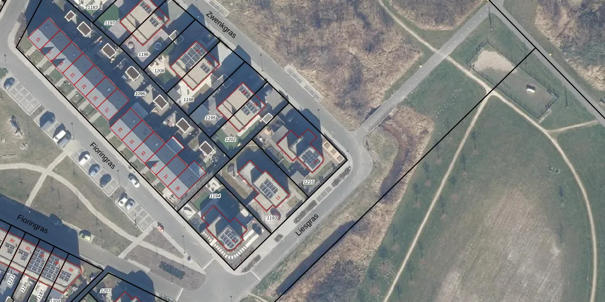 Het perceel waarop Liesgras 13 staat heeft een oppervlakte van 478 m². Dit is een groot perceel. De perceeloppervlakte wordt geregistreerd door het Kadaster. Gedetailleerde informatie over de maten van dit perceel kunt u vinden in het rapport Kadastrale kaart met maatvoering van Liesgras 13.