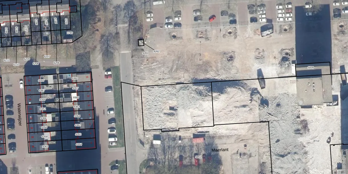 Het perceel waarop Maerlant 178 staat heeft een oppervlakte van 1042 m². Dit is een zeer groot perceel. De perceeloppervlakte wordt geregistreerd door het Kadaster. Gedetailleerde informatie over de maten van dit perceel kunt u vinden in het rapport Kadastrale kaart met maatvoering van Maerlant 178.