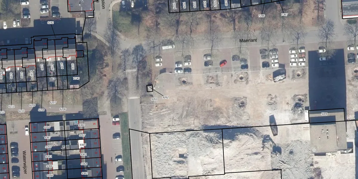 Het perceel waarop Maerlant 192 staat heeft een oppervlakte van 2,2 ha. Dit is een zeer groot perceel. De perceeloppervlakte wordt geregistreerd door het Kadaster. Gedetailleerde informatie over de maten van dit perceel kunt u vinden in het rapport Kadastrale kaart met maatvoering van Maerlant 192.