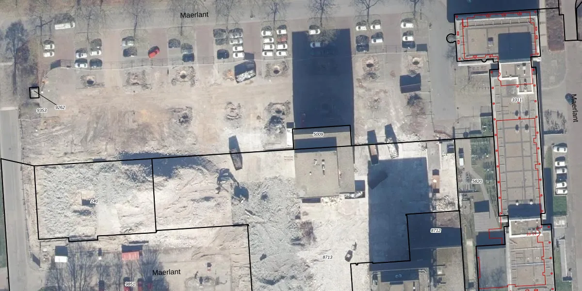 Het perceel waarop Maerlant 212 staat heeft een oppervlakte van 2,2 ha. Dit is een zeer groot perceel. De perceeloppervlakte wordt geregistreerd door het Kadaster. Gedetailleerde informatie over de maten van dit perceel kunt u vinden in het rapport Kadastrale kaart met maatvoering van Maerlant 212.