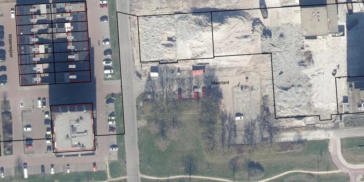 Het perceel waarop Maerlant 238 staat heeft een oppervlakte van 4,1 ha. Dit is een zeer groot perceel. De perceeloppervlakte wordt geregistreerd door het Kadaster. Gedetailleerde informatie over de maten van dit perceel kunt u vinden in het rapport Kadastrale kaart met maatvoering van Maerlant 238.