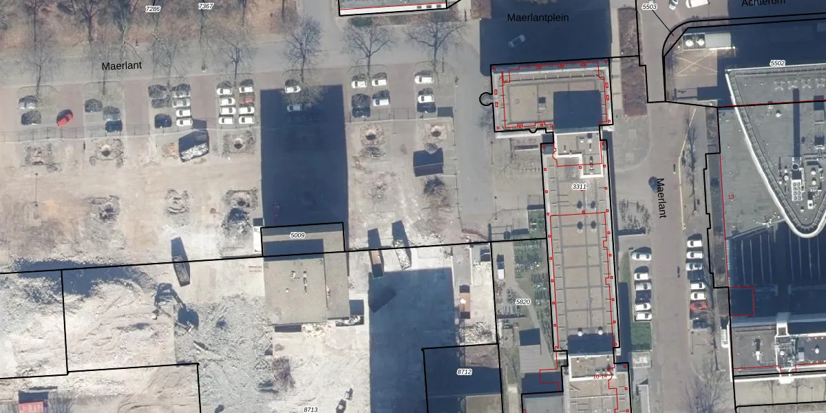Het perceel waarop Maerlant 26 staat heeft een oppervlakte van 2,2 ha. Dit is een zeer groot perceel. De perceeloppervlakte wordt geregistreerd door het Kadaster. Gedetailleerde informatie over de maten van dit perceel kunt u vinden in het rapport Kadastrale kaart met maatvoering van Maerlant 26.
