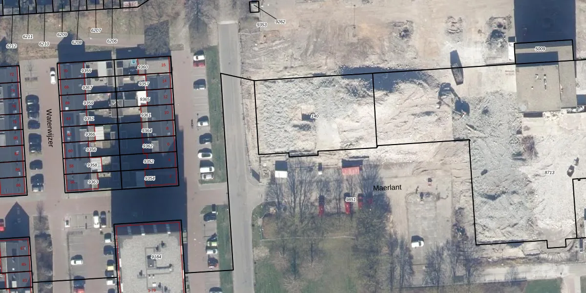 Het perceel waarop Maerlant 350 staat heeft een oppervlakte van 1042 m². Dit is een zeer groot perceel. De perceeloppervlakte wordt geregistreerd door het Kadaster. Gedetailleerde informatie over de maten van dit perceel kunt u vinden in het rapport Kadastrale kaart met maatvoering van Maerlant 350.