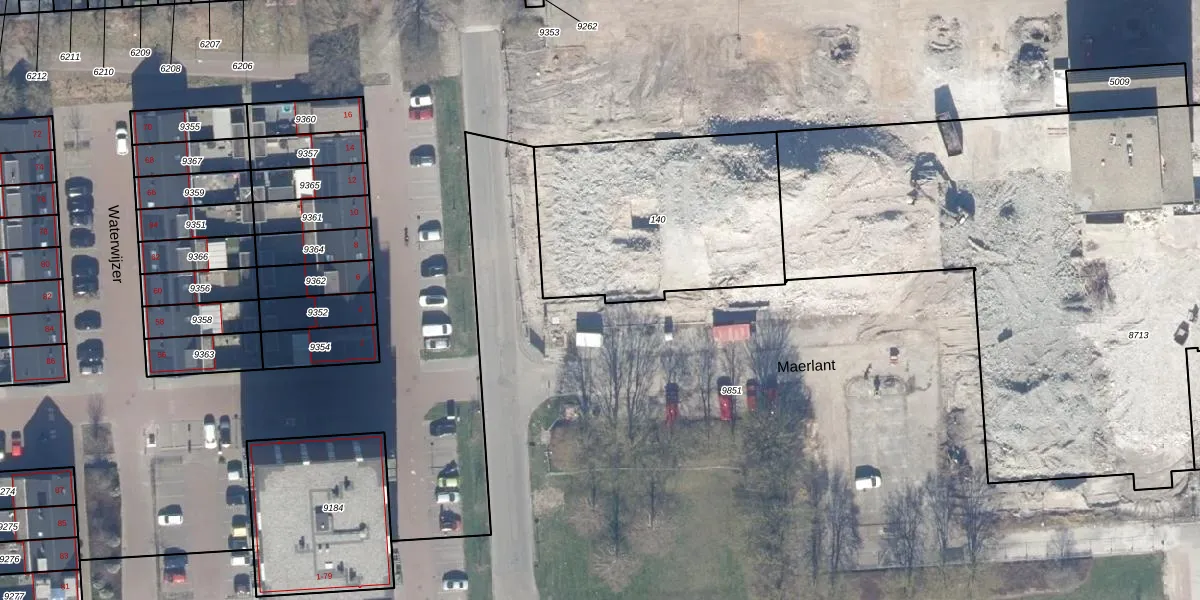 Het perceel waarop Maerlant 374 staat heeft een oppervlakte van 4,1 ha. Dit is een zeer groot perceel. De perceeloppervlakte wordt geregistreerd door het Kadaster. Gedetailleerde informatie over de maten van dit perceel kunt u vinden in het rapport Kadastrale kaart met maatvoering van Maerlant 374.