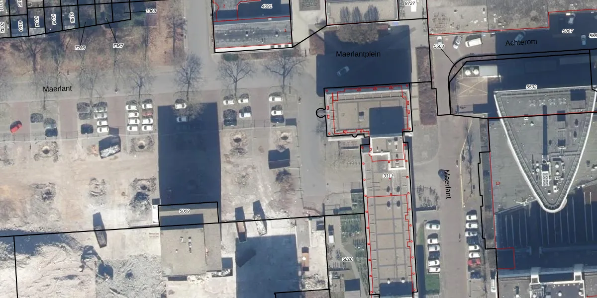 Het perceel waarop Maerlant 38 staat heeft een oppervlakte van 2,2 ha. Dit is een zeer groot perceel. De perceeloppervlakte wordt geregistreerd door het Kadaster. Gedetailleerde informatie over de maten van dit perceel kunt u vinden in het rapport Kadastrale kaart met maatvoering van Maerlant 38.