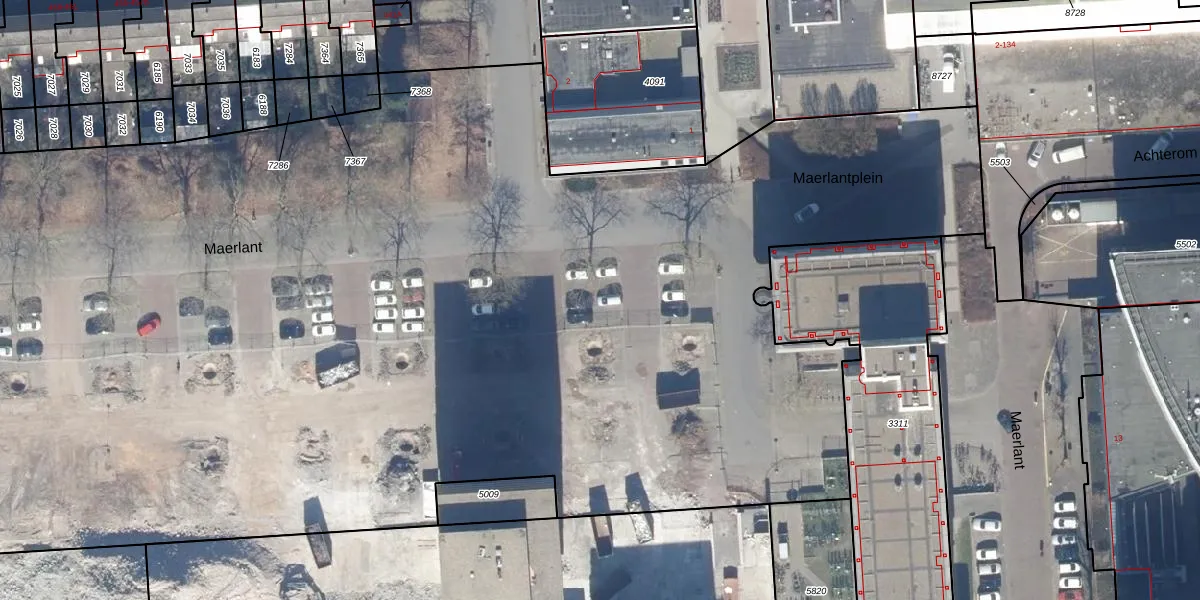 Het perceel waarop Maerlant 46 staat heeft een oppervlakte van 2,2 ha. Dit is een zeer groot perceel. De perceeloppervlakte wordt geregistreerd door het Kadaster. Gedetailleerde informatie over de maten van dit perceel kunt u vinden in het rapport Kadastrale kaart met maatvoering van Maerlant 46.