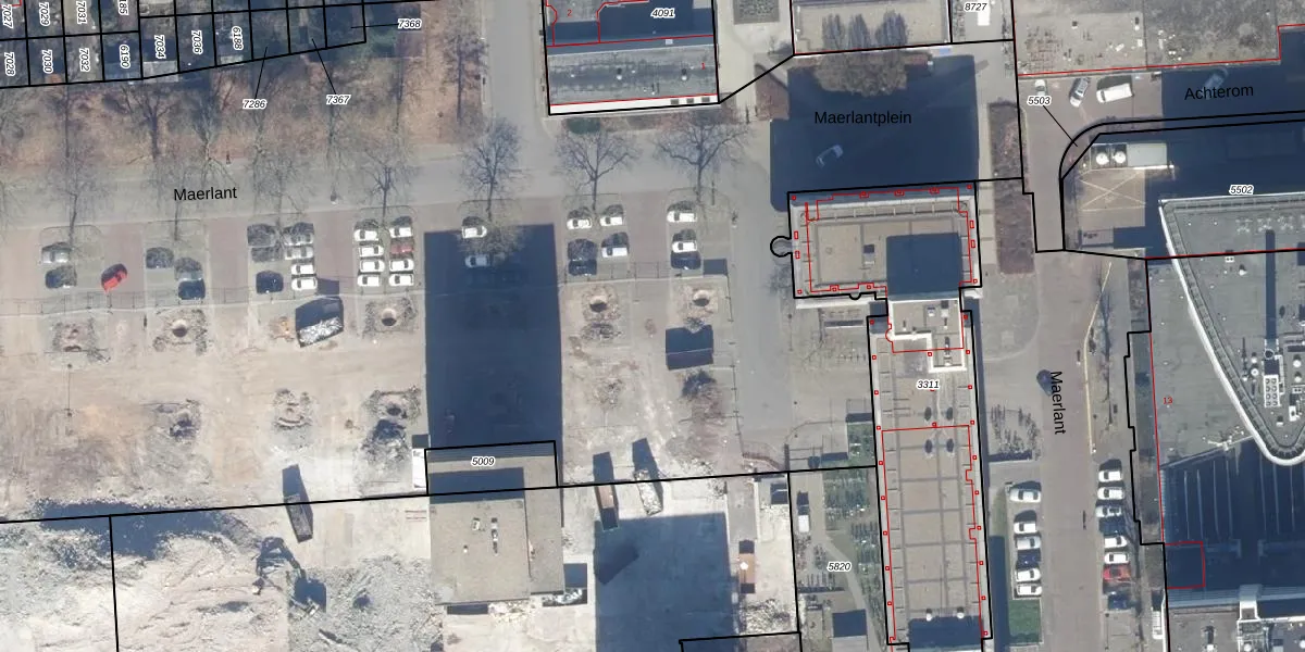 Het perceel waarop Maerlant 81 staat heeft een oppervlakte van 2,2 ha. Dit is een zeer groot perceel. De perceeloppervlakte wordt geregistreerd door het Kadaster. Gedetailleerde informatie over de maten van dit perceel kunt u vinden in het rapport Kadastrale kaart met maatvoering van Maerlant 81.