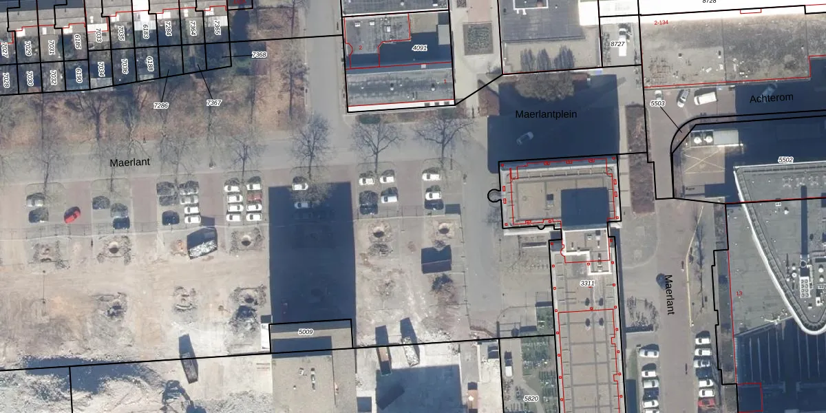 Het perceel waarop Maerlant 83 staat heeft een oppervlakte van 2,2 ha. Dit is een zeer groot perceel. De perceeloppervlakte wordt geregistreerd door het Kadaster. Gedetailleerde informatie over de maten van dit perceel kunt u vinden in het rapport Kadastrale kaart met maatvoering van Maerlant 83.