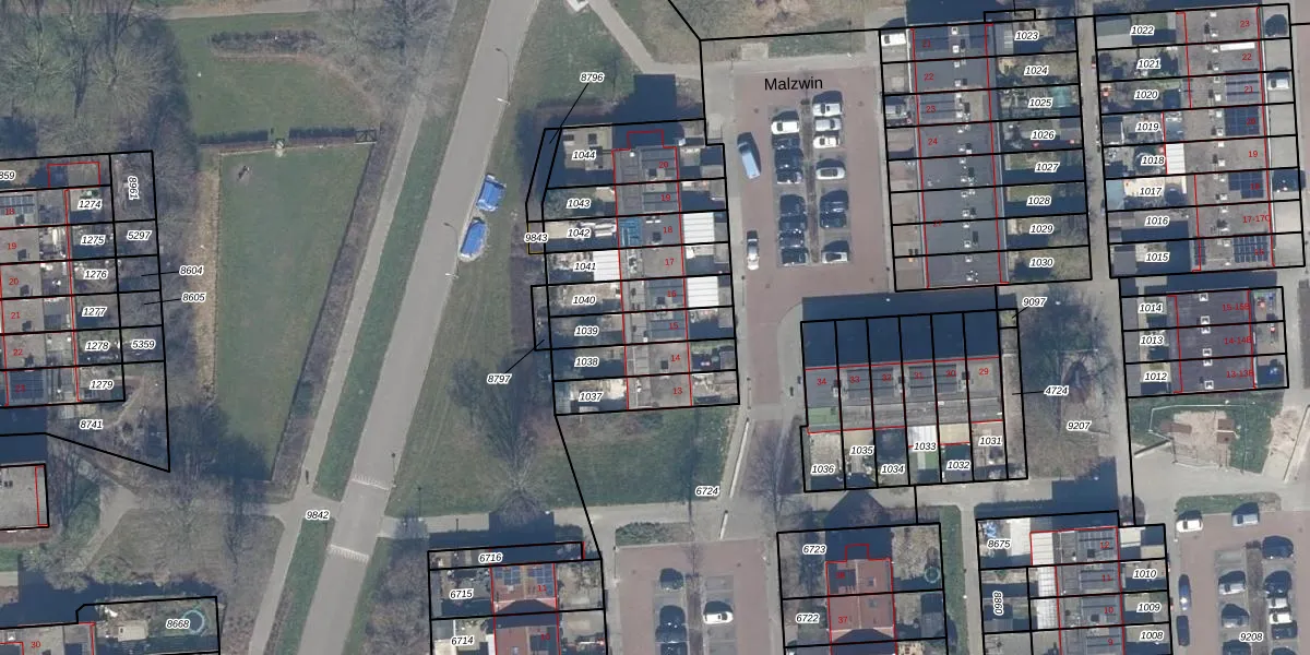 Gebruik de zoekbalk of klik op een perceel voor informatie over de adressen binnen dit perceel.