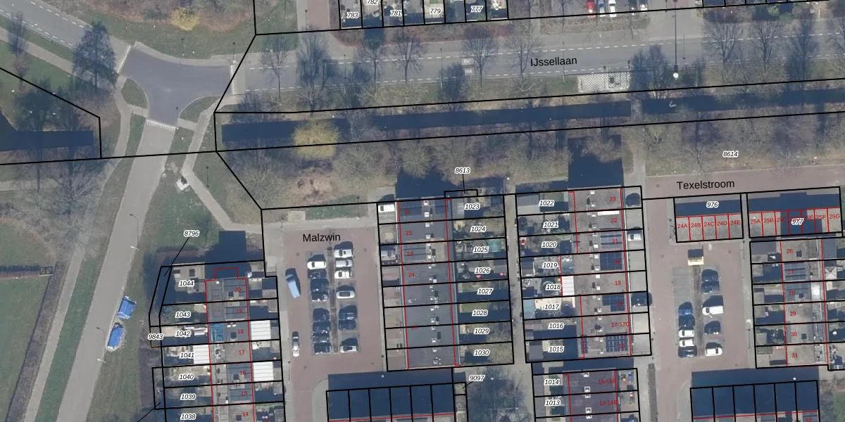 Gebruik de zoekbalk of klik op een perceel voor informatie over de adressen binnen dit perceel.