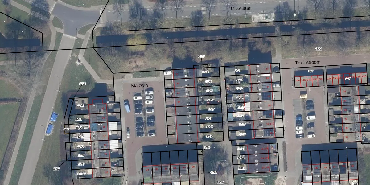 Gebruik de zoekbalk of klik op een perceel voor informatie over de adressen binnen dit perceel.