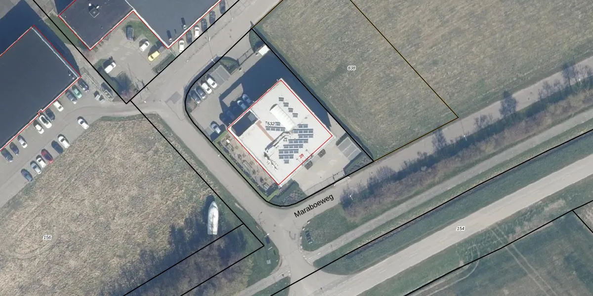 Maraboeweg 20 is gelegen op kadastraal perceel LLS00B532. Deze kadastrale aanduiding is uniek en wordt gebruikt door het Kadaster om eigendomsrechten en andere zakelijke rechten vast te leggen. Het perceel maakt onderdeel uit van de kadastrale gemeente Lelystad.